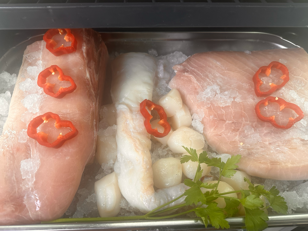 Für Fischliebhaber halten wir unsere frische Fischtheke bereit, gefüllt mit verschiedenen hochwertigen Fischsorten.